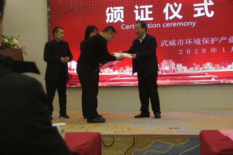會(huì)上,武威市生態(tài)環(huán)境綜合行政執(zhí)法隊(duì)隊(duì)長(zhǎng)袁得功為會(huì)員單位頒發(fā)了牌證。