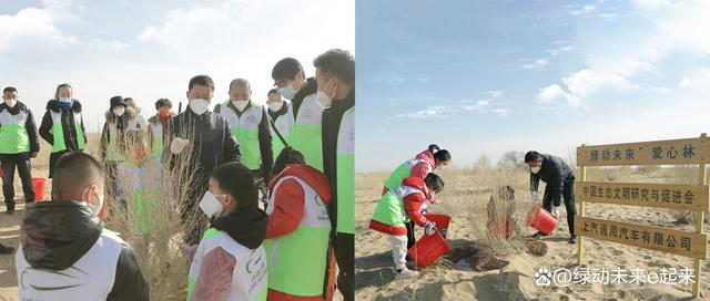2022年12月24日,由上汽通用汽車和中國生態(tài)文明研究與促進(jìn)會(huì)以及武威市環(huán)境保護(hù)產(chǎn)業(yè)協(xié)會(huì)聯(lián)合發(fā)起的“綠動(dòng)未來”環(huán)保公益平臺(tái),發(fā)動(dòng)甘肅當(dāng)?shù)氐闹驹刚?,攜手治沙英雄、“全國勞動(dòng)模范”石述柱的傳人,在甘肅民勤縣騰格里沙漠種下10,000余棵梭梭樹,落成又一片“綠動(dòng)未來愛心林”。