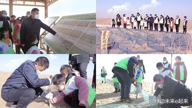 為弘揚(yáng)民勤防沙治沙精神,鼓勵(lì)公眾參與助力當(dāng)?shù)厣鷳B(tài)持續(xù)改善,2022年12月24日,十余組甘肅當(dāng)?shù)刂驹刚?,在武威市環(huán)境保護(hù)產(chǎn)業(yè)協(xié)會(huì)和“綠動(dòng)未來”平臺(tái)的帶領(lǐng)下,前往騰格里沙漠。大家與治沙英雄石述柱之子石光明一起,探視并養(yǎng)護(hù)了“綠動(dòng)未來”民勤1號(hào)林,近距離觀摩學(xué)習(xí)了“民勤模式”科學(xué)治沙技術(shù),并將所學(xué)轉(zhuǎn)化為切實(shí)的植樹成果,攜手在騰格里沙漠再植10,000余棵梭梭樹苗,落成又一片“綠動(dòng)未來”愛心林。